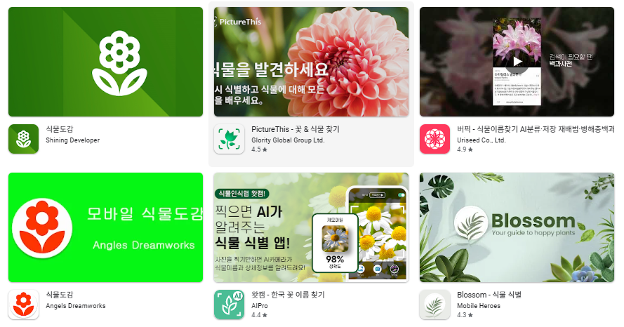 - 전 세계적으로 인기 있는 무료 꽃 검색 앱