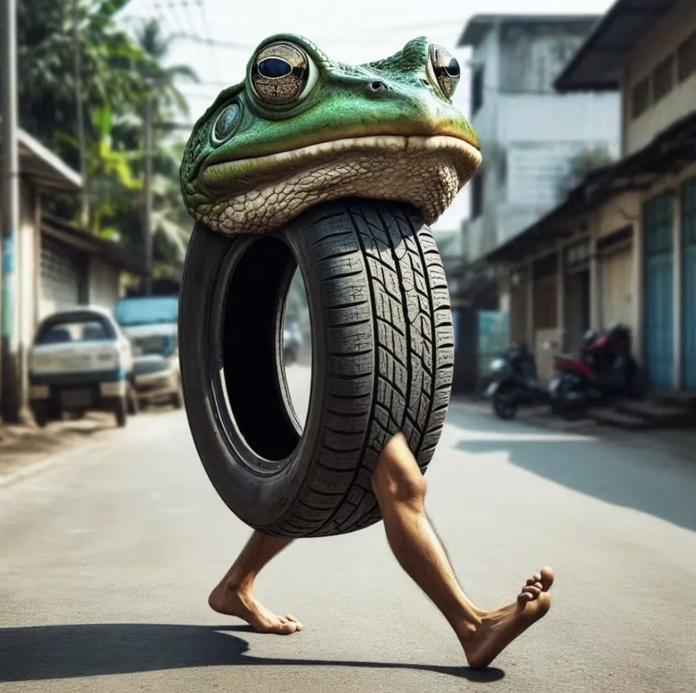 🛞모티브: 타이어, 개구리, 인간 다리